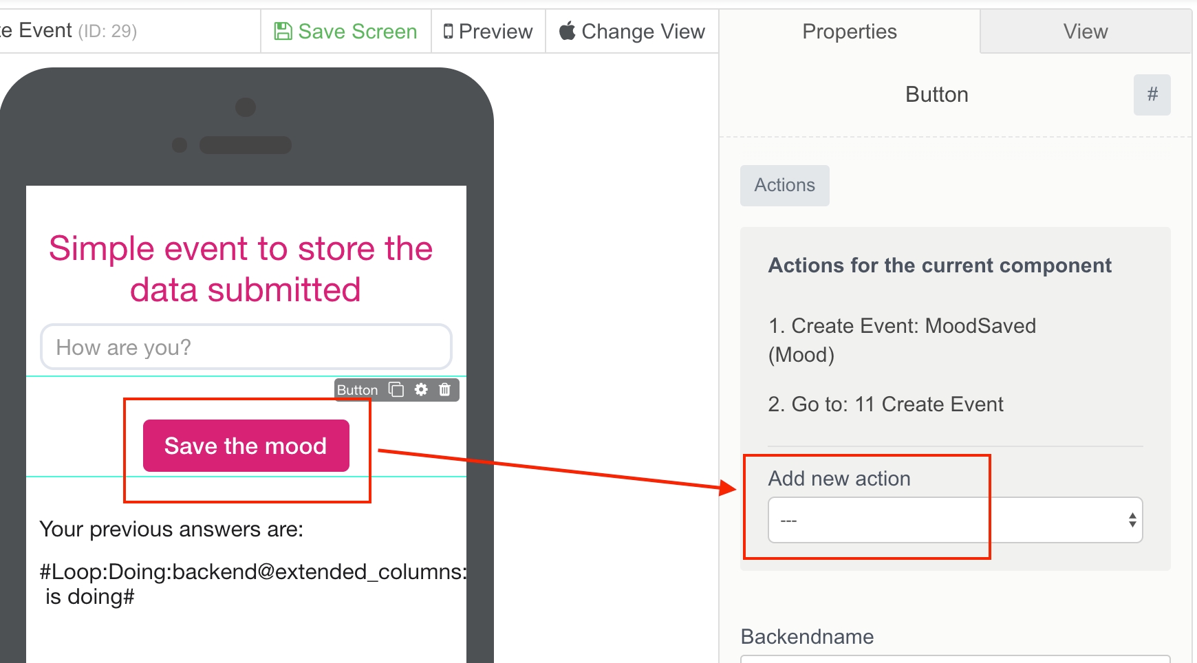 In this example we create Text Input and Button which saves the data from the text input to Event.
