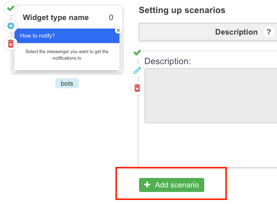 Next to the added widget click Add scenario