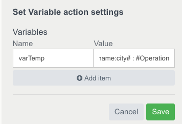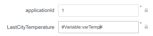 In previous example we used API call to third party service to check weather in the city. Now we extend it by passing the data to the next API call. We will use next API call to save the weather data into internal platform storage - column LastCityTemperature in Objects.