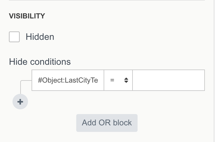 Fill in the first field in Hide conditions with: #Object:LastCityTemperature#