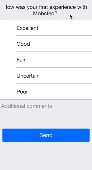 Fill in it's Text field with How was your first experience with Mobsted?