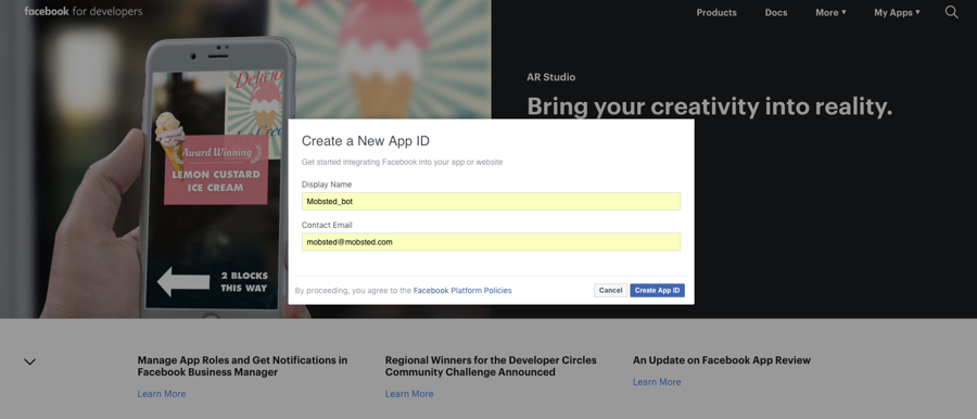 You must have a Facebook account to be able to create and manage bots on Facebook.