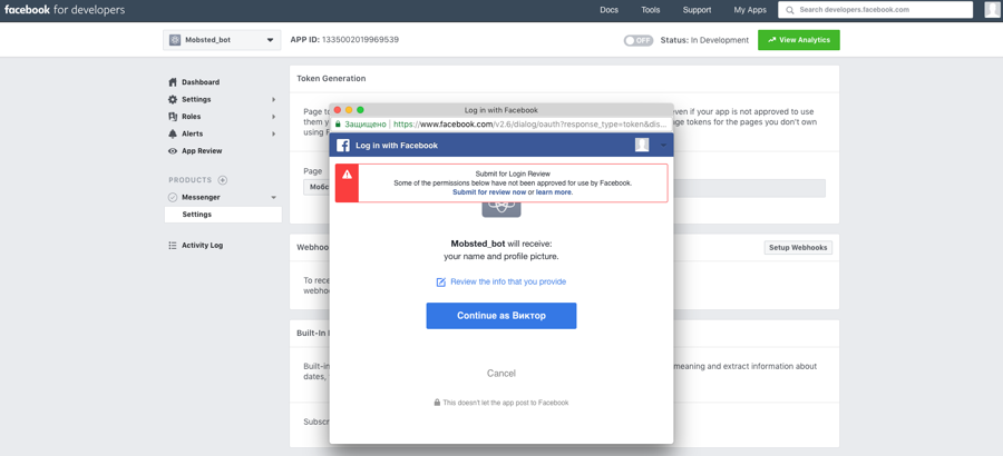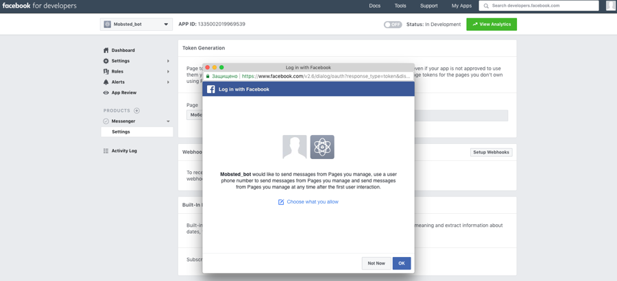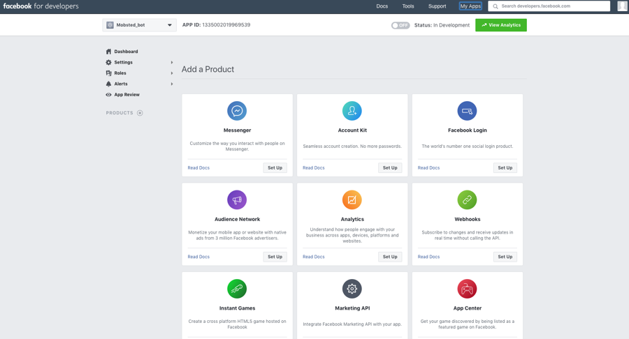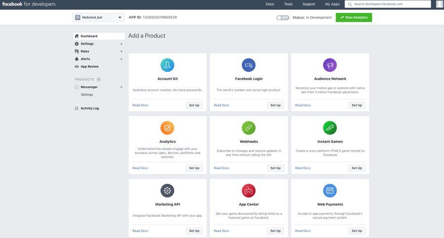 10) Go to the Facebook bot setup page on the Mobsted platform;