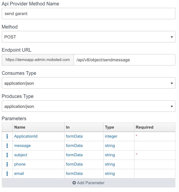 From the dropdown on the left select send garant in the Mobsted Provider that we created on the previous step