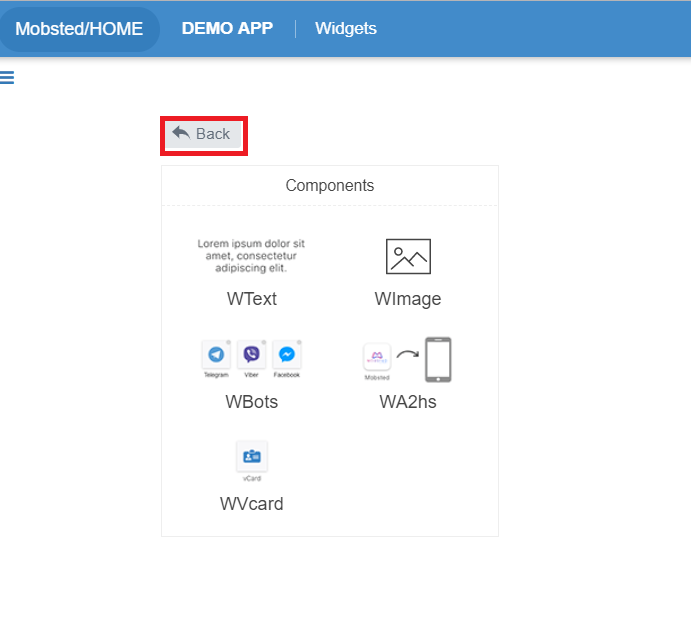 Drag and Drop the vCard component to widget emulator