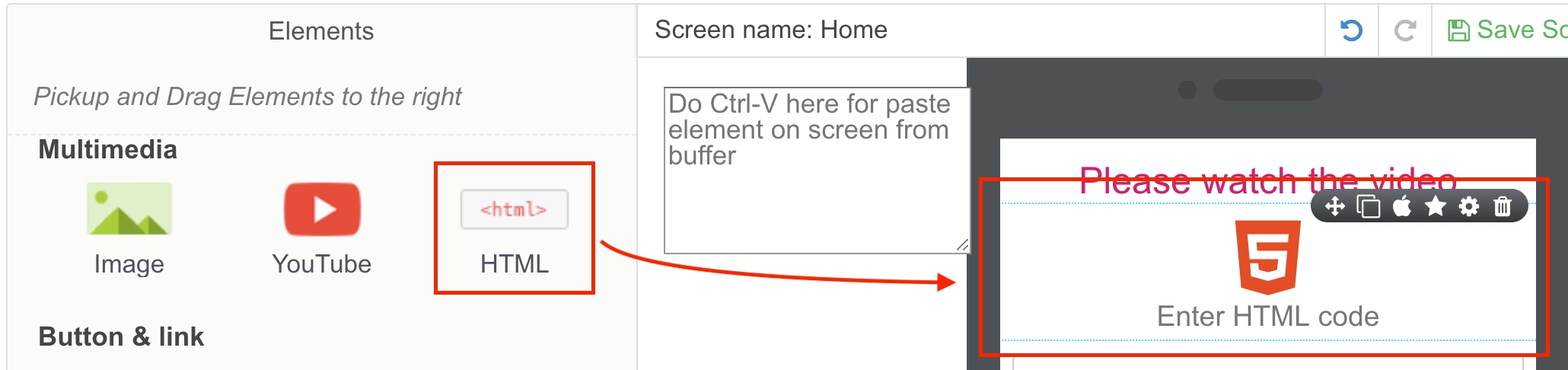 Paste HTML or / and CSS code into Default Value field in element properties.