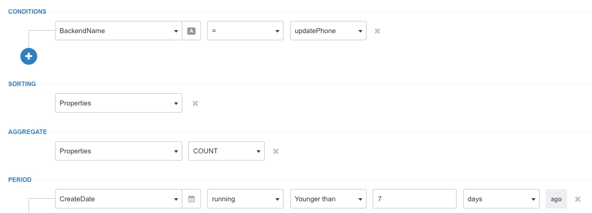 2. Set up for Event filter that calculates the number of clicks on the button with the BackendName "updatePhone" within last 7 days: