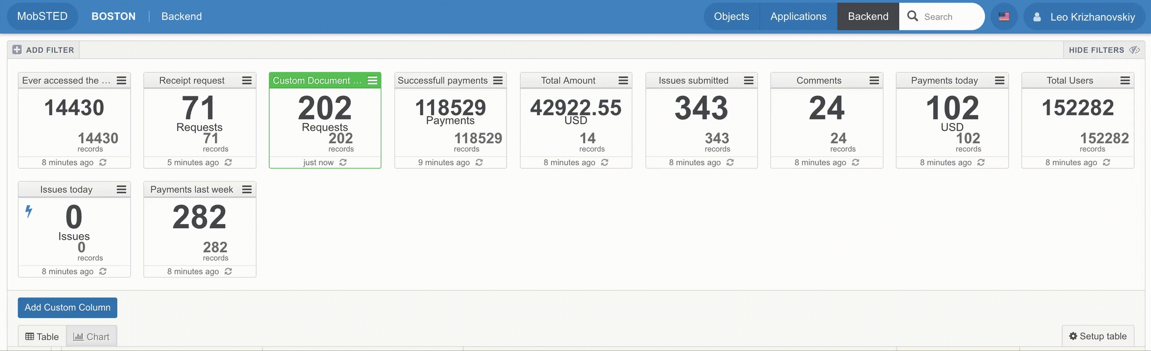 Note: for more detailed information on the set up, please, check Use automatic data filters article. You can also check how it is set up in Demo App in your acсount, screen - 8 Filters Count.